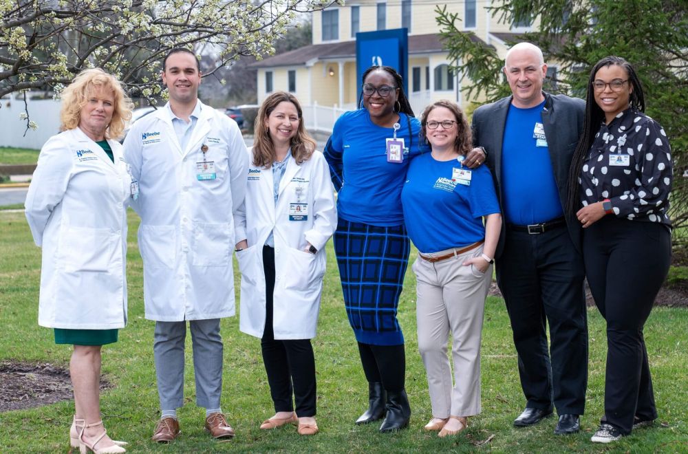 Beebe Healthcare’s Wendi Schirvar, PhD, left, Ryan Arias, DO, Miri Shlomi, MD, Joyce Robert, MD, Tanya Ray, MS, Jeffrey Hawtof, MD, and Cynthia Lamour, DO, all of whom are affiliated with the Family Medicine Residency Program.